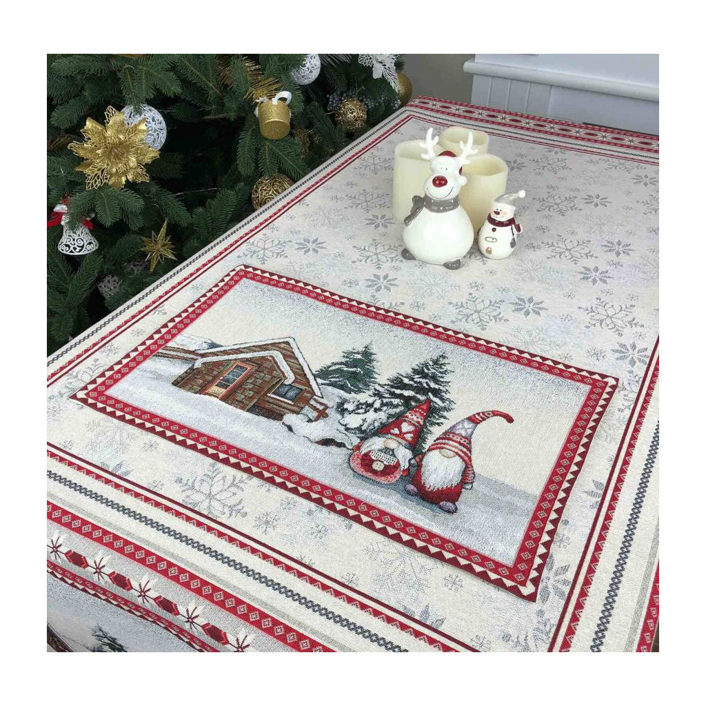 Короткий опис: Форма - прямокутна, Матеріал - гобелен, Декорування - святковий принт, склад тканини: 60% бавовна, 40% поліестер, Колір - білий