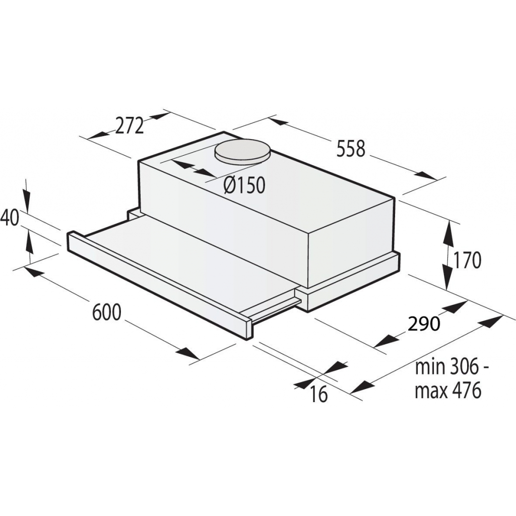 Короткий опис: Тип - вбудована, в шафу, 450 м3/год, 131 Вт, відведення повітря і рециркуляція, ширина корпусу - 60 см, - алюмінієвий, Тип управління - механічне, Матеріал корпусу - метал, Лампи - світлодіодні лампи, 71 Дб, 600 х 306 х 170 мм, 7 кг, нержавіюча сталь