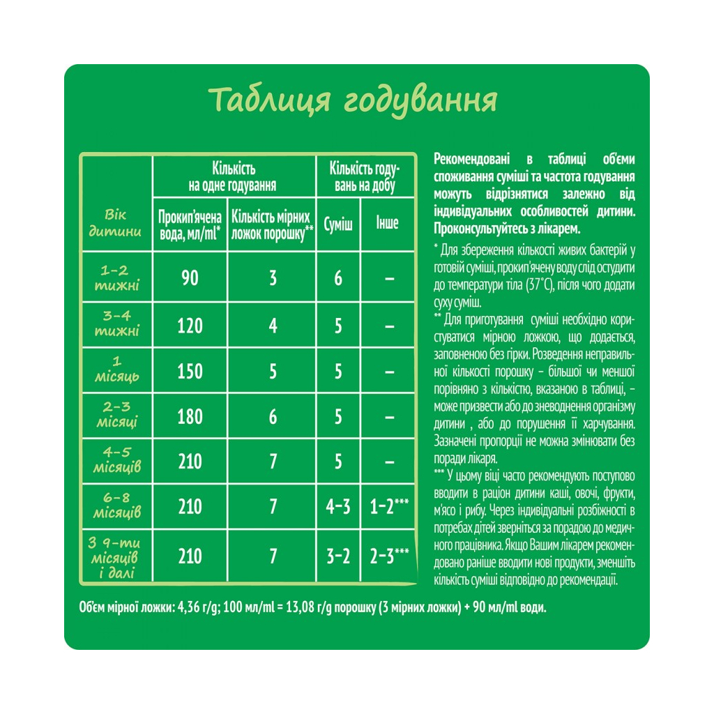 - Розведення неправильної кількості порошку — більшої чи меншої, порівнюючи з кількістю, зазначеною в таблиці, — може призвести або до зневоднення організму дитини, або до порушення її харчування