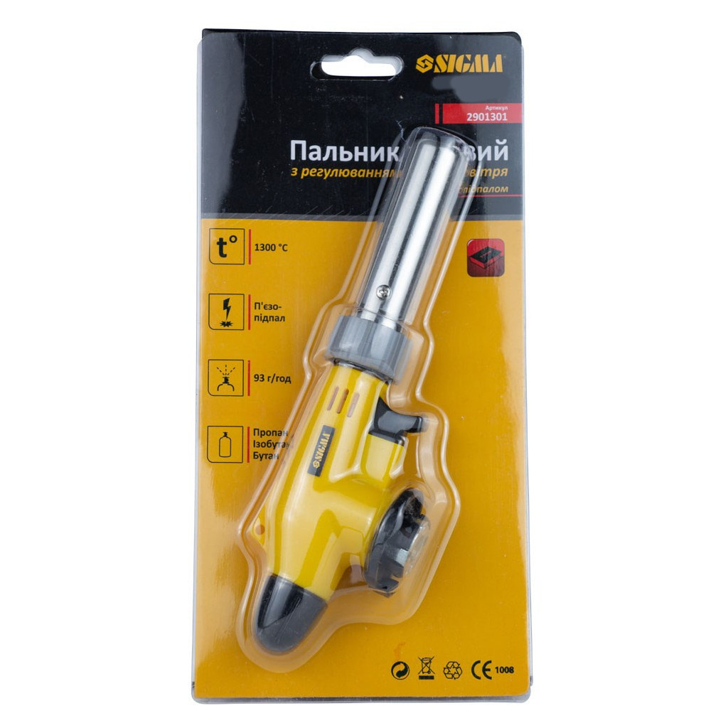 Газовий паяльник Sigma турбо 360 з регулюванням подачі повітря та п'єзо 18мм 203мм (2901301)