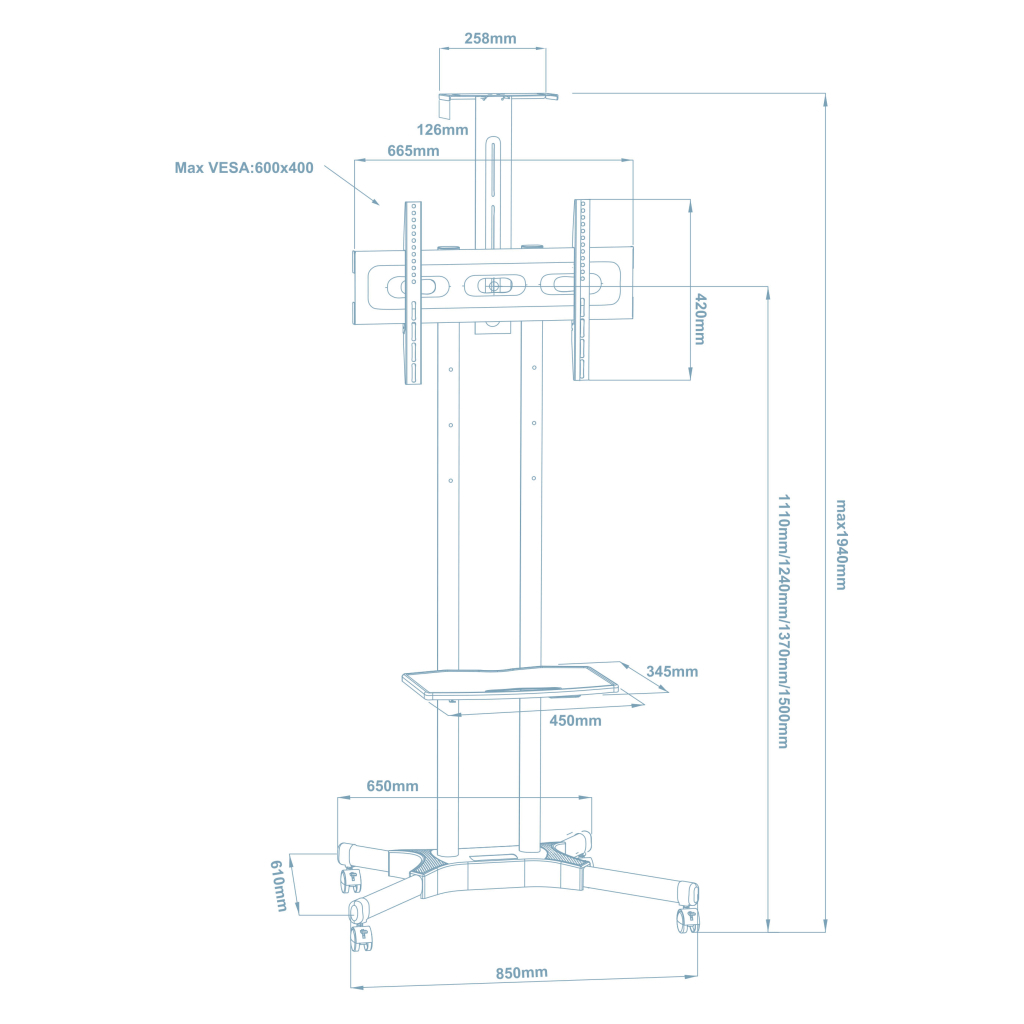 - VESA: 1100 x 200