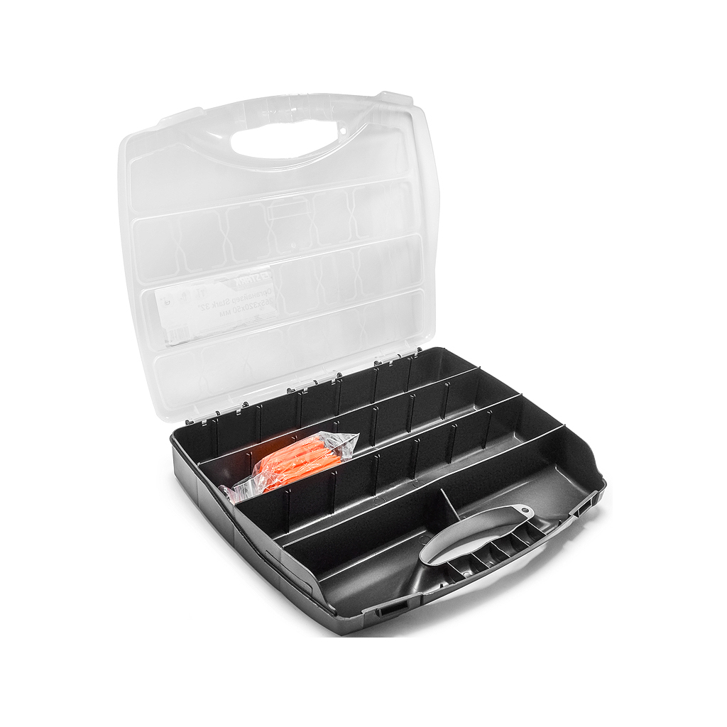 Органайзери Stark SmartBox допоможуть вам організувати зберігання дрібних деталей, предметів і елементів, як-от металовироби, пластикові дюбелі, бити, свердла, ґудзики, ущільнювачі тощо. Органайзери компактні, зручні, довговічні у використанні та транспортуванні.