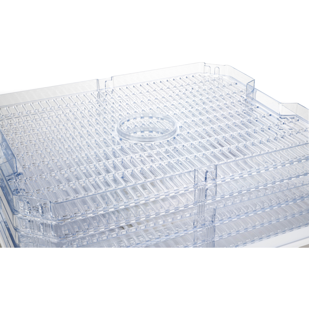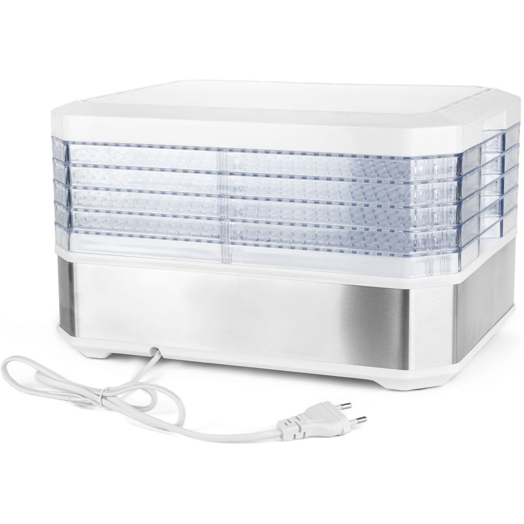 Сушарка для продуктів електрична EISEN EFD-055W - підходить для сушіння: фруктів, овочів, грибів, зелені, ягід, м'яса, ковбаси, риби, хліба та інших продуктів. За рахунок температурного режиму сушіння, що настроюється, в межах від 35°С до 70°С, продукти після дегідратації зберігають значну кількість вітамінів і мінералів. Конструкція та розташування піддонів забезпечують рівномірне висушування на всіх рівнях.