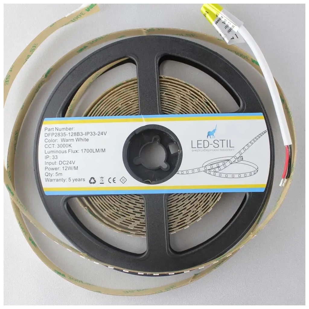 Світлодіодна стрічка LED-STIL 3000K 12 Вт/м 2835 128 діодів IP33 24 Вольта 1700 lm тепле світло (DFP2835-128B3-IP33-24V)