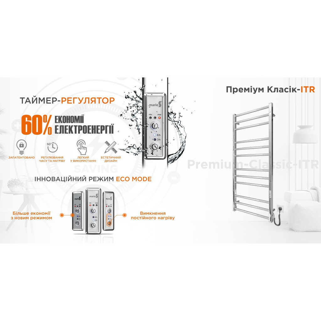 Повний опис: Електросушарка для рушників побутова Преміум Класік-I 800х500/80 TR К. Обладнана таймер-регулятором та конектором для підключення в розетку з будь-якого боку. Сумісна з комплектом прихованого підключення. Має 9 ребер та стояки з профільної труби.