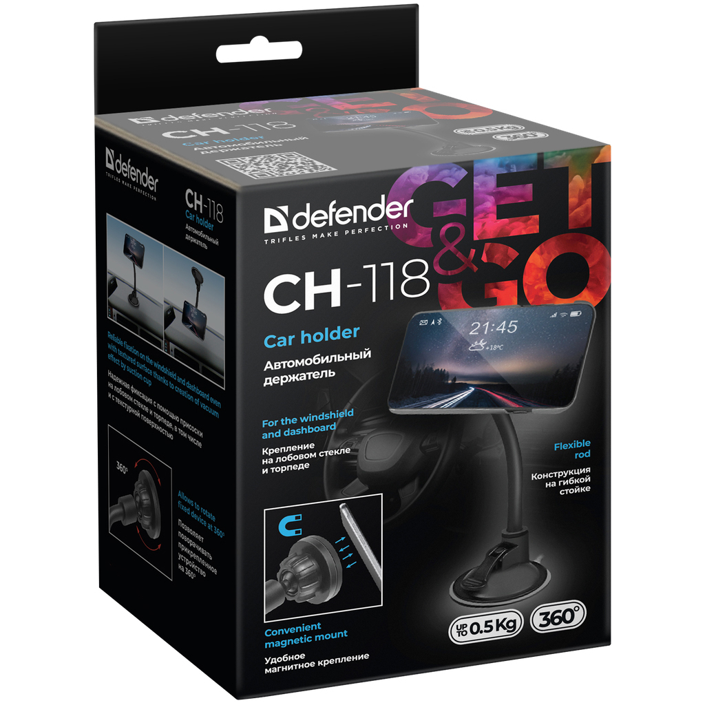 Автотримач магнітний Defender CH-118 підходить для телефона, смартфона, навігатора. Надійна фіксація на лобовому склі та приладовій панелі, навіть із текстурною поверхнею. Пристрій повертається на 360° градусів і фіксується в будь-якій позиції! Металеві пластини для кріплення смартфона на тримачі входять до комплекту.