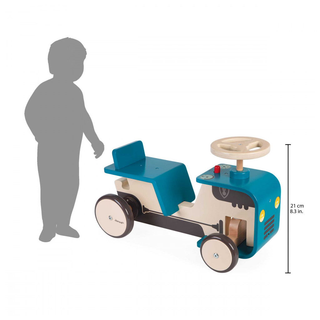 Повний опис: Цей дерев’яний трактор із синьо-зеленою кольоровою гамою та округлими формами був розроблений, щоб допомогти дітям віком від 12 місяців розвивати свої моторні навички під час штовхання. Це також допоможе їм навчитися контролювати свої рухи під час дослідження навколишнього світу. Він має вбудований гудок, який сигналізує про будь-яку небезпеку та сповіщає людей про прибуття дитини на ферму! Його 2 безшумні гумові передні шини та робоче кермо означають, що він може впоратися з будь-якими труднощами в сільській місцевості. Час починати – робота фермера ніколи не закінчена!