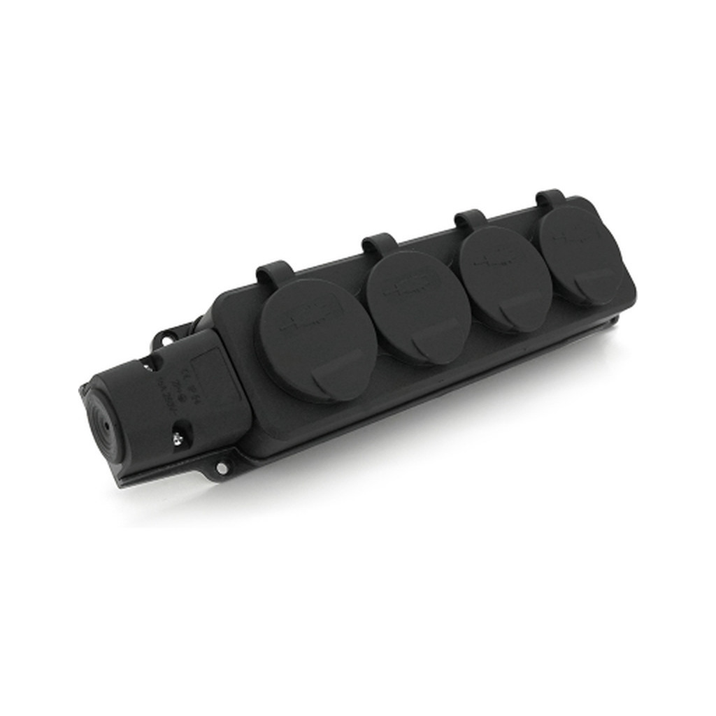 Колодка PiPo PP/SP-4/44/16B - це електрична колодка з чотирма гніздами, виготовлена з каучуку чорного кольору. Вона має захист від вологи та пилу (IP44), а також заглушку та заземлення.