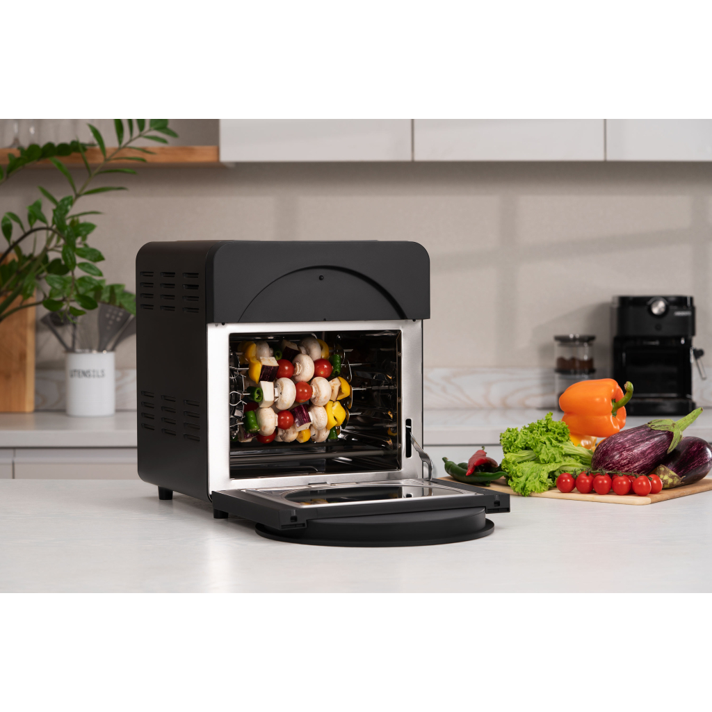 Інноваційні функції, такі як обертання рожна, відкладений старт, розморожування та підтримання температури, а також наявність LED-дисплея, внутрішнього освітлення та сенсорне керування роблять приготування неймовірно легким. Тоді як індикація закінчення процесів, запобіжний вимикач та захист від перегріву зумовлюють безпеку користування.
