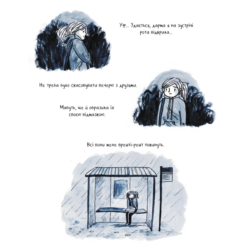 Авторка бестселера «Тиха дівчина у гучному світі» створила збірку коміксів про тривожність і депресію, сповнену мʼякого гумору й глибоких сенсів, бо інколи навіть такі прості речі, як встати з ліжка, видаються непосильними подвигами.