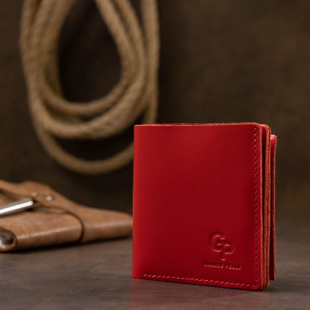 Короткий опис: Формат - вертикальний, Матеріал - натуральна шкіра, для карток, для монет, червоний