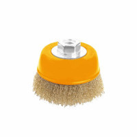 Щітка для електроінструменту Tolsen конічна 100 мм М14, гофрований латунований дріт 0.3 мм (77627)